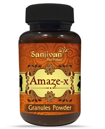 AMAZE-X Granules is an Ayurvedic herbal formulation designed to support vitality, stamina, and overall physical strength. The formulation contains powerful herbs and natural ingredients such as Ashwagandha, Vidarikand, Gokhru, Kaunch, Safed Musli, Shatavari extract, Mulethi, Sonth, Shilajit, Soyabean, and a nutritious blend of Almond and Walnut powder. These ingredients are traditionally known in Ayurveda for their rejuvenating, strengthening, and vitality-enhancing properties. The formulation helps improve energy levels, supports reproductive health, and promotes overall physical endurance and performance.