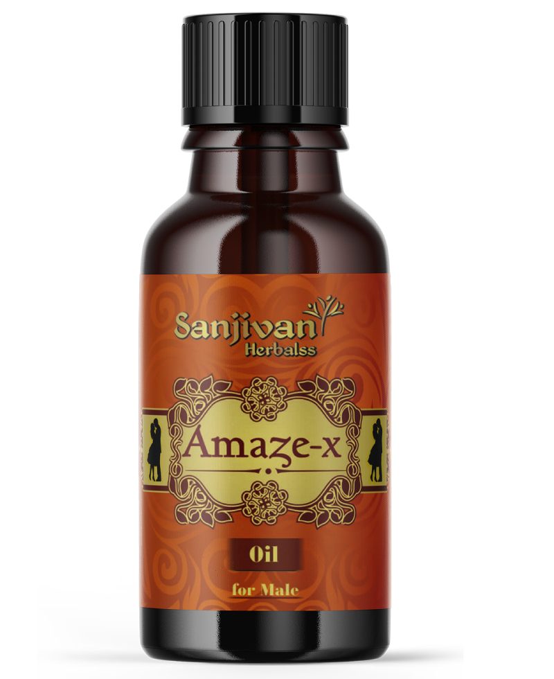 AMAZE-X Oil is an Ayurvedic herbal oil specially formulated for male wellness. It contains powerful herbal ingredients such as Ashwagandha, Dalchini, Vidarikand, Akarkara, Dhatura, Nutmeg Oil, Lavang Oil, Kalonji Oil, Jyotishmati Oil, and Jaitoon Oil blended in Til Oil base. These herbs are traditionally used in Ayurveda for their stimulating, strengthening, and rejuvenating properties. The oil helps support male vitality, improve blood circulation, and assist in managing erectile weakness and sexual fatigue when used regularly with proper guidance.