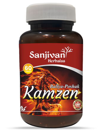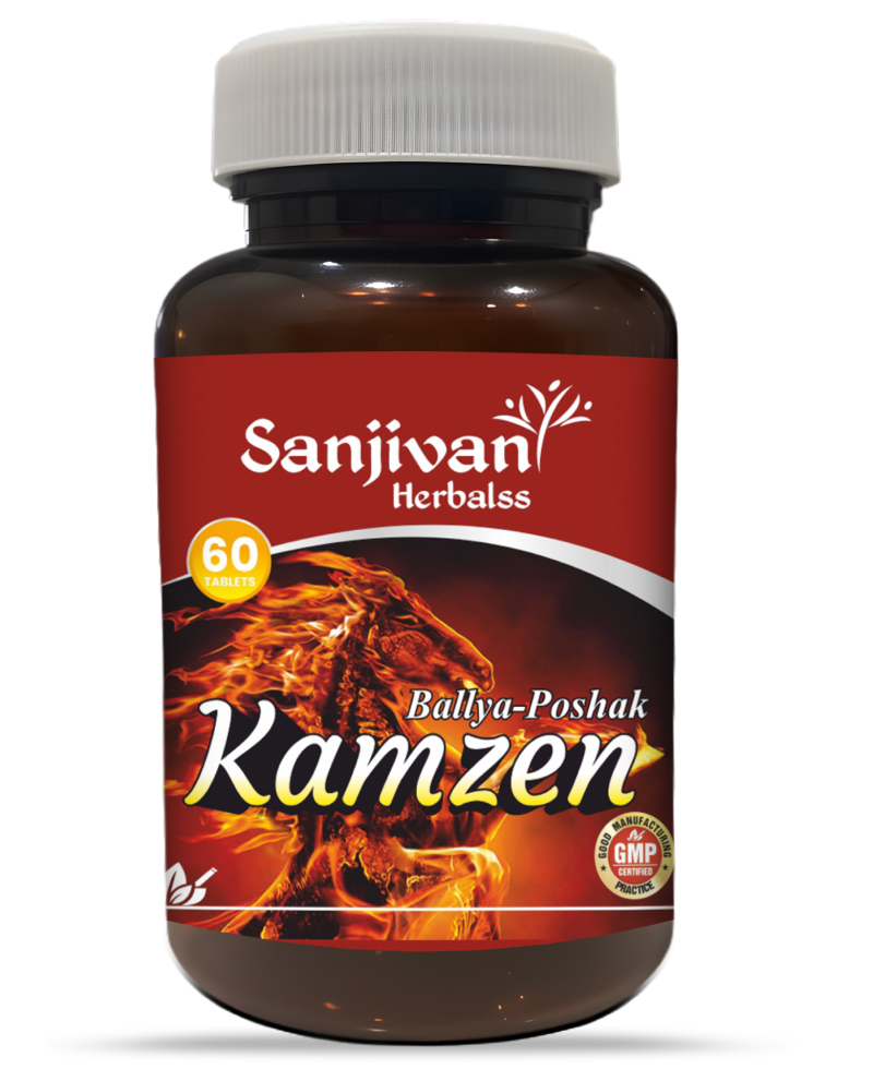 KAMZEN Tablet is an Ayurvedic proprietary formulation designed to improve vitality, stamina, and overall body strength. The formulation contains powerful herbal extracts and classical preparations such as Manmathabhra Ras, Ashwagandha, Shatavari, Gokhru, Akarkara, Kaunch, Jaiphal, Javitri, Safed Musli, Shilajit, Lavang, Kuchla (Purified), and Kesar. These ingredients are traditionally known in Ayurveda for their rejuvenating, strengthening, and vitality-enhancing properties. The formulation helps reduce weakness, improve stamina, support reproductive health, and enhance overall energy and physical performance.