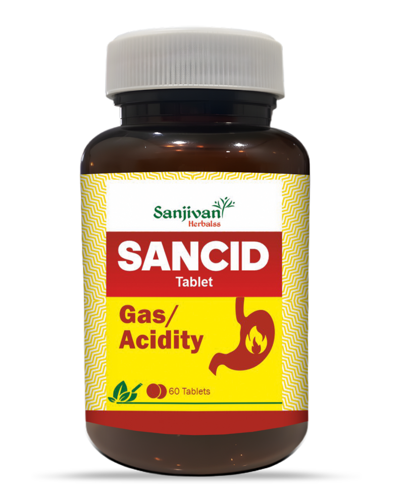 SANCID Tablet is an Ayurvedic proprietary formulation designed to improve digestion and relieve gastric discomfort. It contains traditional Ayurvedic ingredients such as Gau Danti Bhasma, Triphala Extract, Sajji Kshaar, Mulethi Extract, Shankh Bhasma, and Sunthi Extract. These ingredients are known for their deepan (digestive stimulant), pachan (digestive), and shothhar (anti-inflammatory) properties. The formulation helps balance stomach acid, improve digestion, relieve acidity and gas, and support overall digestive health.